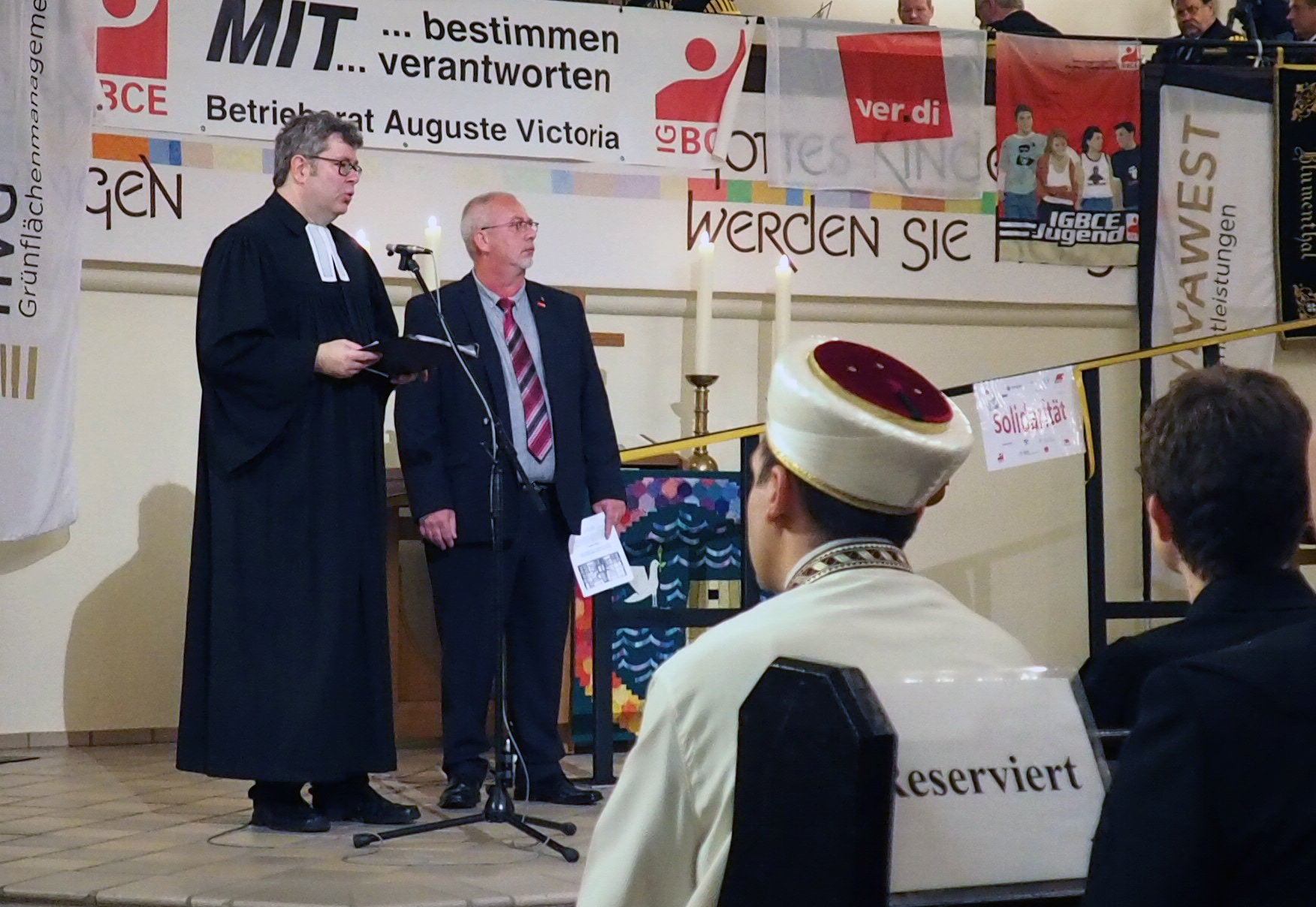Pfarrer Roland Wanke und der Vertrauenskörpervorsitzende des Bergwerks AV Dietmar Bartsch